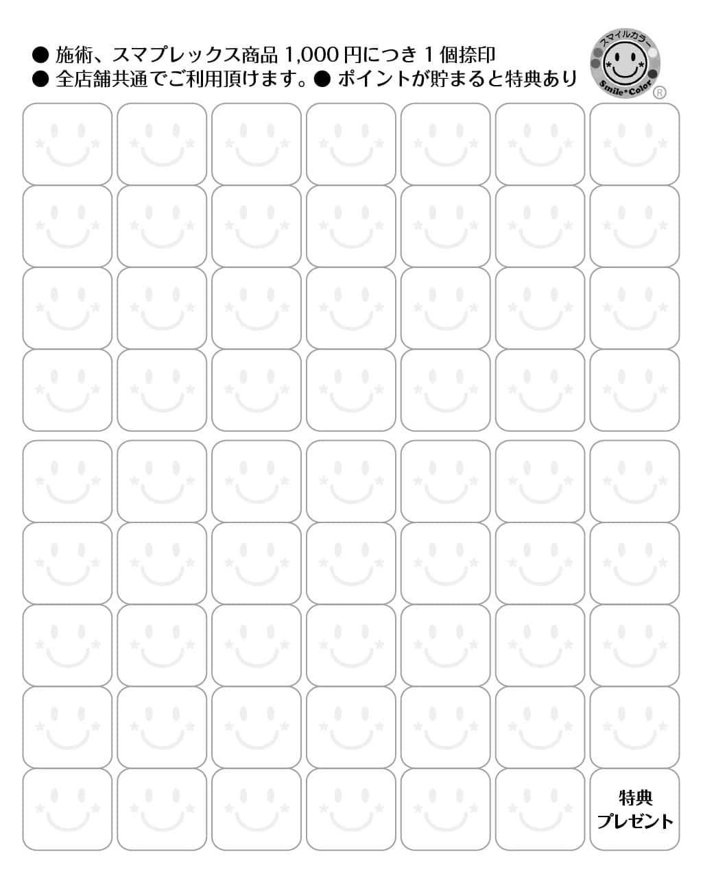 スマイルカラーFCサロンにご来店されたお客様用のポイントカードです。